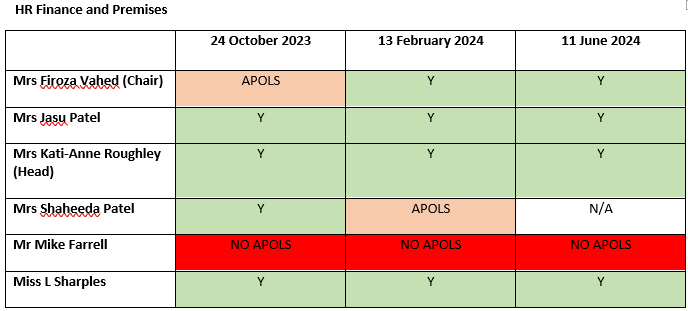 - HR AND FINANCE. Chair: Firoza Vahed. To deal with all matters delegated by the Governing Board regarding, Finance, the school premises and Health and Safety. To deal with matters arising regarding staffing, personnel and pay. Please see the Terms of Reference.